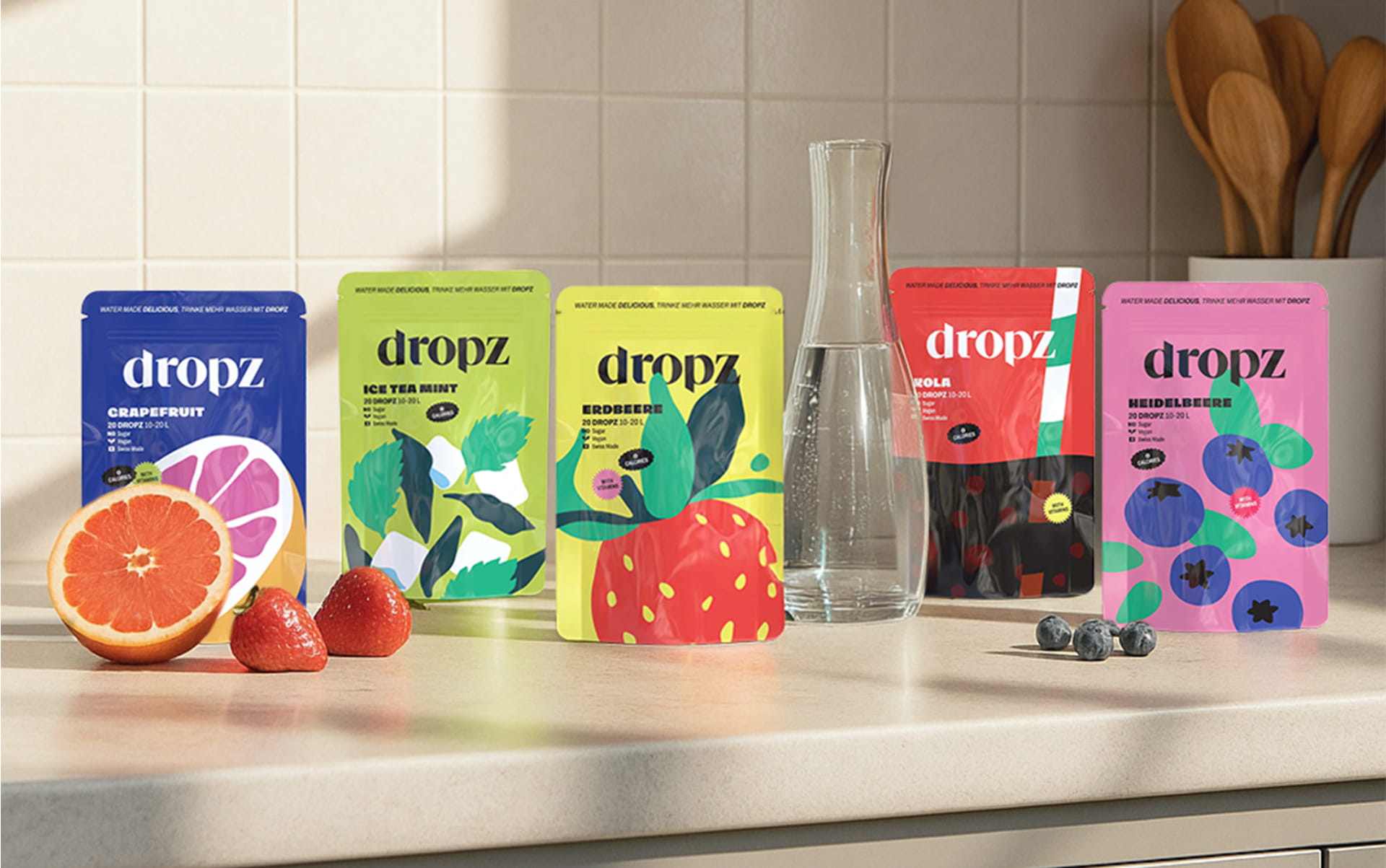 Abbiamo ridisegnato tutto: logo, pack, illustrazioni. Frutta gigante, colori senza timore e forme quasi astratte. Guardi il prodotto e capisci subito il gusto, senza filtri salutisti o aria da brand che ti fa sentire in colpa.